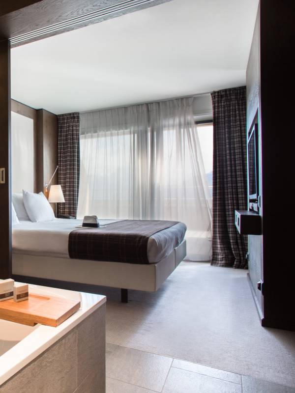 Wie der Name schon verrät, ist die imposante Alpenkette in dieser Suite allgegenwärtig und lädt in diesen Suiten oder auf den privaten Terrassen dazu ein, dass fesselnde Schauspiel aus Natur, Licht und Weite zu beobachten. Dank gekonnt positionierter Raumteiler kann die Suite vergrössert oder ebenso verkleinert werden. Geniessen Sie die beeindruckende Aussicht vom Bad aus oder machen Sie aus Wohn- und Schlafzimmer einen einzigen, grossen Raum. Es besteht auch die Möglichkeit, zwei zusätzliche Betten aufzustellen, um mehr Platz für die ganze Familie zu haben.