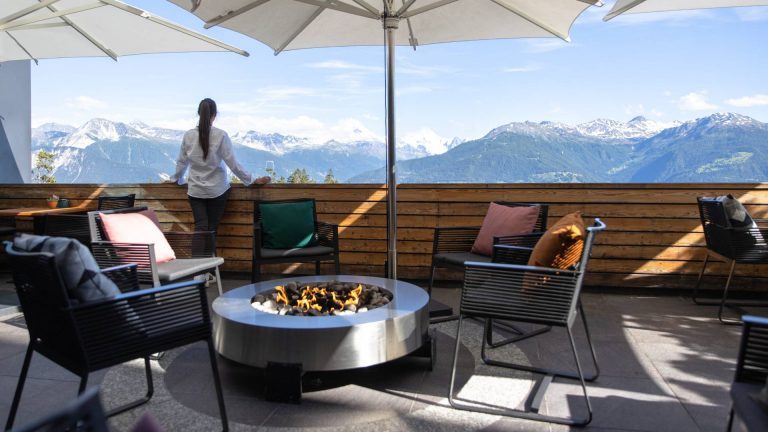 Captivé par le paysage saisissant qui dès le hall de l’hôtel, apparaît sous vos yeux, vous êtes comme attiré par la Terrasse Valaisanne et la vue spectaculaire, qui se déploie face à vous.