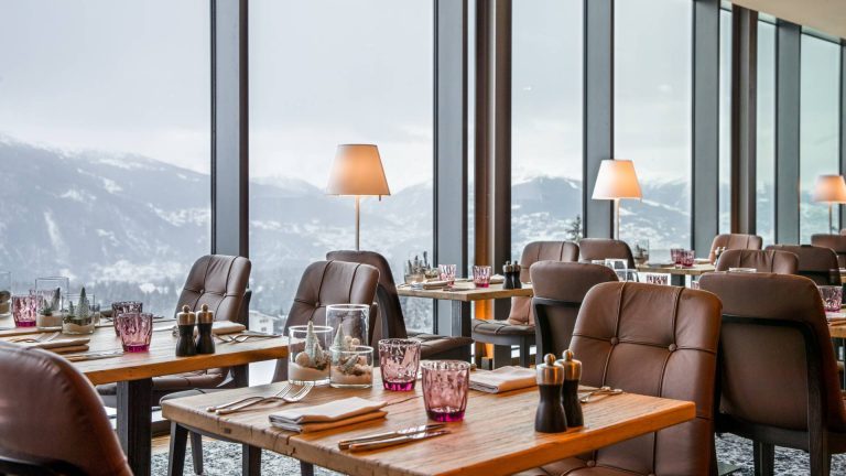 Un design contemporain aux notes boisées, des dimensions hors normes et pourtant, une sensation incroyablement cosy, une immersion dans le paysage le plus grandiose de Crans-Montana, grâce à l’immense verrière… Le Lounge est bien plus qu’un spot d’exception. Il est une table inspirée où l’on découvre les formidables produits de saison des artisans locaux, revisités par l’inventivité de Yann Kriba. Tombé amoureux de la région, le chef alsacien invente une cuisine à l’image du lieu : moderne, sensorielle et généreuse.